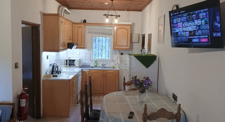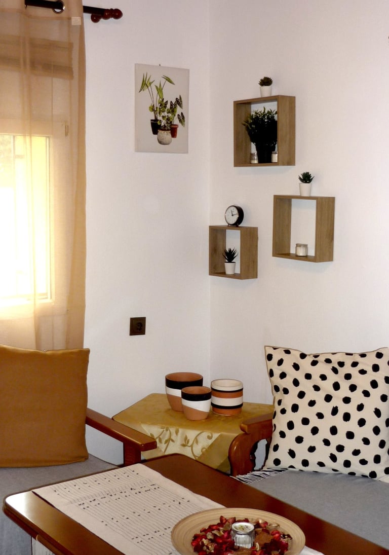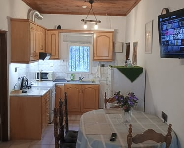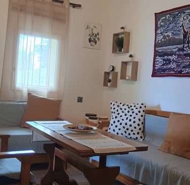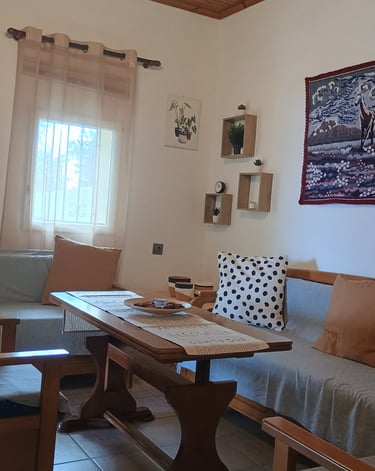 Το καθιστικό του σπιτιού του Nakou είναι ο ιδανικός χώρος για στιγμές χαλάρωσης και ηρεμίας. Με άνετους καναπέδες και ζεστά χρώματα, προσφέρει μια ατμόσφαιρα που σε προσκαλεί να αφήσεις πίσω τις έγνοιες της ημέρας. Εδώ, μπορείς να απολαύσεις ένα καλό βιβλίο ή να ακούσεις την αγαπημένη σου μουσική, δημιουργώντας έτσι μια γαλήνια και ευχάριστη εμπειρία. Οι φωτεινές ανοιχτές κουρτίνες επιτρέπουν στα ηλιαχτίδες να εισέλθουν στον χώρο, δίνοντας του μια αίσθηση ζεστασιάς. Κάθε γωνία του καθιστικού είναι φτιαγμένη για να σε κάνει να νιώθεις άνετα και σαν το σπίτι σου, ενώ η ηρεμία που προσφέρει είναι ακριβώς ό,τι χρειάζεσαι για να επαναφορτίσεις τις μπαταρίες σου.Στους δύο καναπέδες -κρεββάτια προστίθεται επιπλέον στρώμα και μπορούν να κοιμηθούν δύο άτομα.