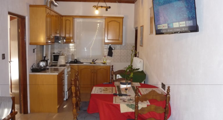 Στην κουζίνα του σπιτιού, όλα είναι οργανωμένα με προσοχή και φαντασία. Ο πάγκος είναι γεμάτος από φρέσκα υλικά, ενώ οι κατσαρόλες και τα τηγάνια περιμένουν να δημιουργήσουν νόστιμα πιάτα. Μπορείτε να φτιάξετε μια σαλάτα με φρέσκα λαχανικά ή να ετοιμάσετε ένα χορταστικό γεύμα που θα ικανοποιήσει την πείνα σας. Οι μυρωδιές των μπαχαρικών και των φρέσκων βοτάνων γεμίζουν τον χώρο, προσκαλώντας όλους να συμμετάσχουν στην περιπέτεια της μαγειρικής. Κάθε γωνιά της κουζίνας εμπνέει δημιουργικότητα και συντροφιά, όπου η οικογένεια και οι φίλοι μπορούν να συγκεντρωθούν γύρω από το τραπέζι για ένα ευχάριστο δείπνο. Σε αυτή την κουζίνα, η γεύση και η φιλία συνδυάζονται ιδανικά.