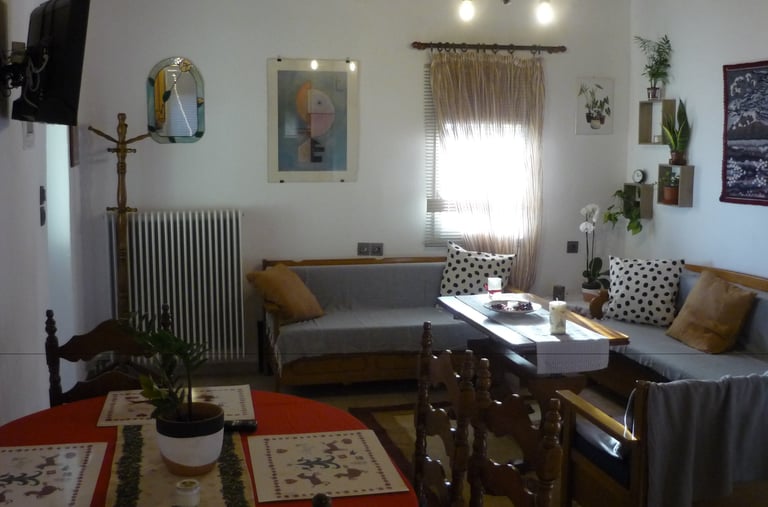 Το καθιστικό του σπιτιού του Nakou είναι ο ιδανικός χώρος για στιγμές χαλάρωσης και ηρεμίας. Με άνετους καναπέδες και ζεστά χρώματα, προσφέρει μια ατμόσφαιρα που σε προσκαλεί να αφήσεις πίσω τις έγνοιες της ημέρας. Εδώ, μπορείς να απολαύσεις ένα καλό βιβλίο ή να ακούσεις την αγαπημένη σου μουσική, δημιουργώντας έτσι μια γαλήνια και ευχάριστη εμπειρία. Οι φωτεινές ανοιχτές κουρτίνες επιτρέπουν στα ηλιαχτίδες να εισέλθουν στον χώρο, δίνοντας του μια αίσθηση ζεστασιάς. Κάθε γωνία του καθιστικού είναι φτιαγμένη για να σε κάνει να νιώθεις άνετα, ενώ η ηρεμία που προσφέρει είναι ακριβώς ό,τι χρειάζεσαι για να επαναφορτίσεις τις μπαταρίες σου.